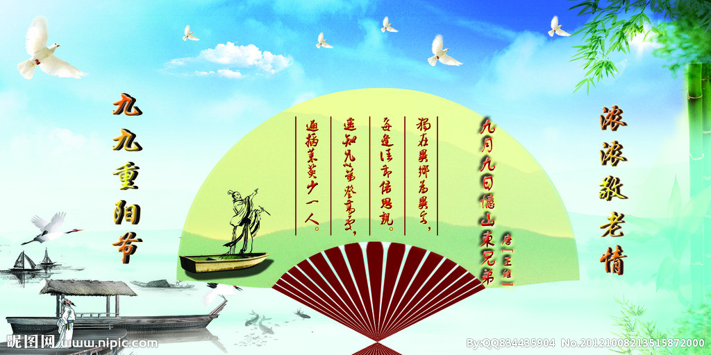 重陽節(jié),農(nóng)歷九月初九,二九相重,稱為“重九”,民間在該日有登高的風(fēng)俗,所以重陽節(jié)又稱“登高節(jié)”。還有重九節(jié)、茱萸、菊花節(jié)等說法。由于九月初九“九九”諧音是“久久”,有長久之意,所以常在此日祭祖與推行敬老活動。