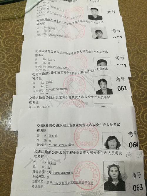 我公司共有八名相關(guān)人員參加了此次考試,考試合格后將由黑龍江省交通廳頒發(fā)相應(yīng)的公路水運(yùn)質(zhì)量施工企業(yè)“三類人員”崗位資格證書。