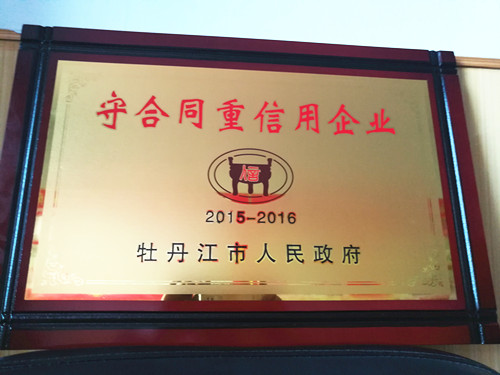 2017年6月初,我公司再次被牡丹江市政府授予“守合同重信用企業(yè)”榮譽稱號。迄今為止,這是我公司連續(xù)十四年獲此殊榮。