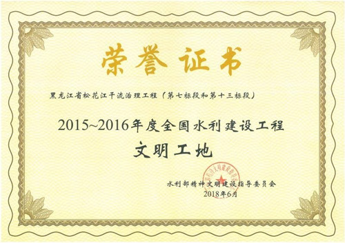 經(jīng)過建設(shè)者們實(shí)干創(chuàng)新,不懈地努力,先后榮獲了“全國水利建設(shè)工程文明工地”、“愛心企業(yè)”、“抗洪搶險(xiǎn)先進(jìn)企業(yè)“等榮譽(yù)稱號。