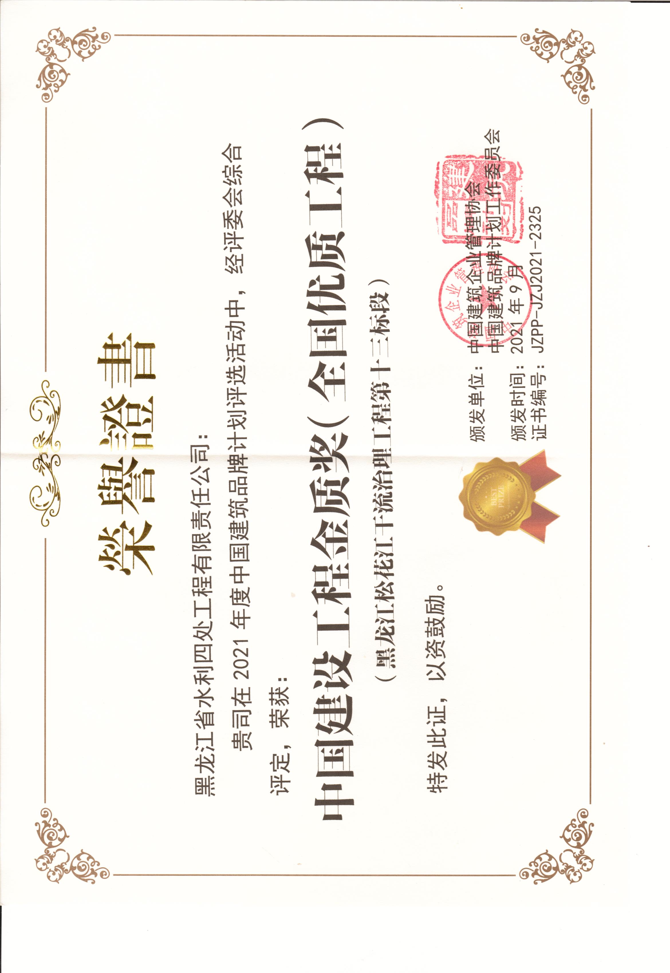 上一篇:黑龍江省優(yōu)質(zhì)工程(龍江杯)獲獎證書