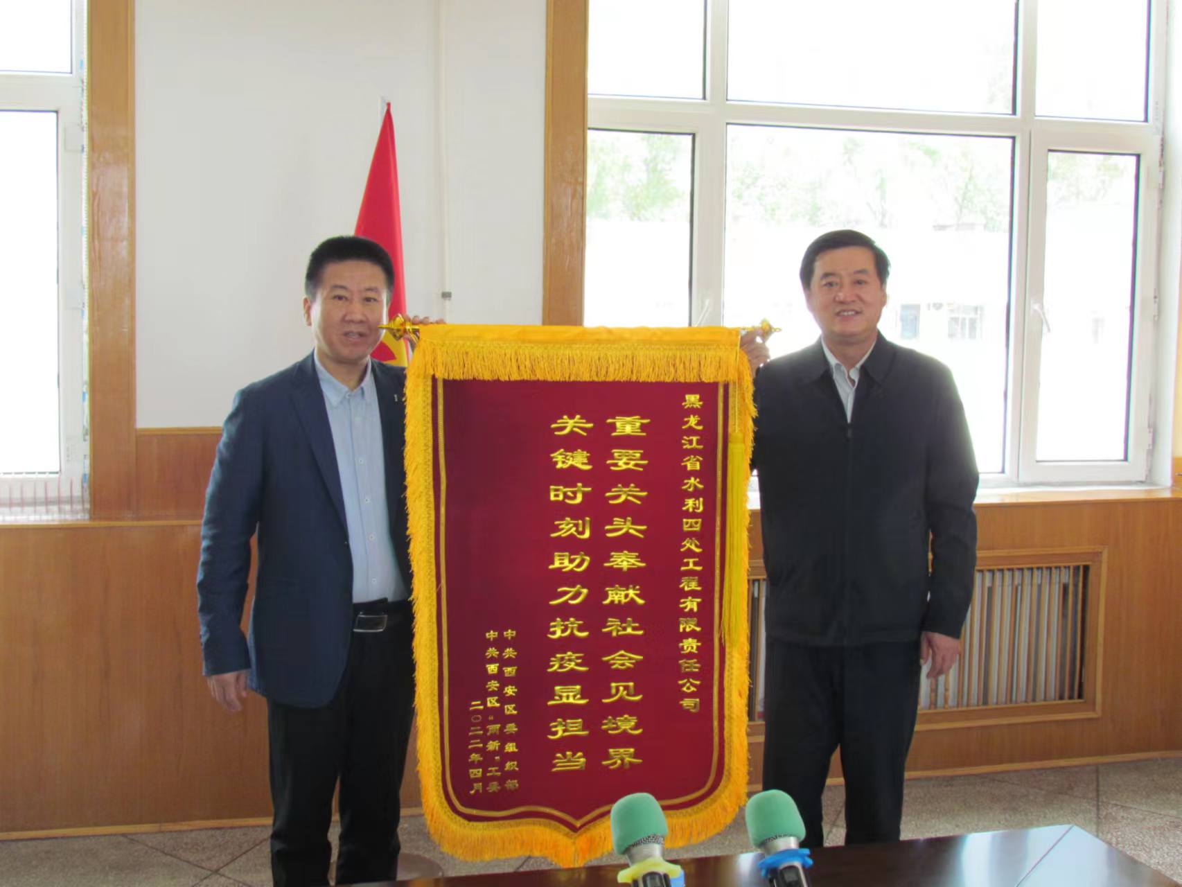 紅通通錦旗上金字閃耀:“關鍵時刻助力抗疫顯擔當,重要關頭奉獻社會見境界”,是區(qū)委對我公司以實際行動助力新冠抗疫工作的認可與嘉獎。